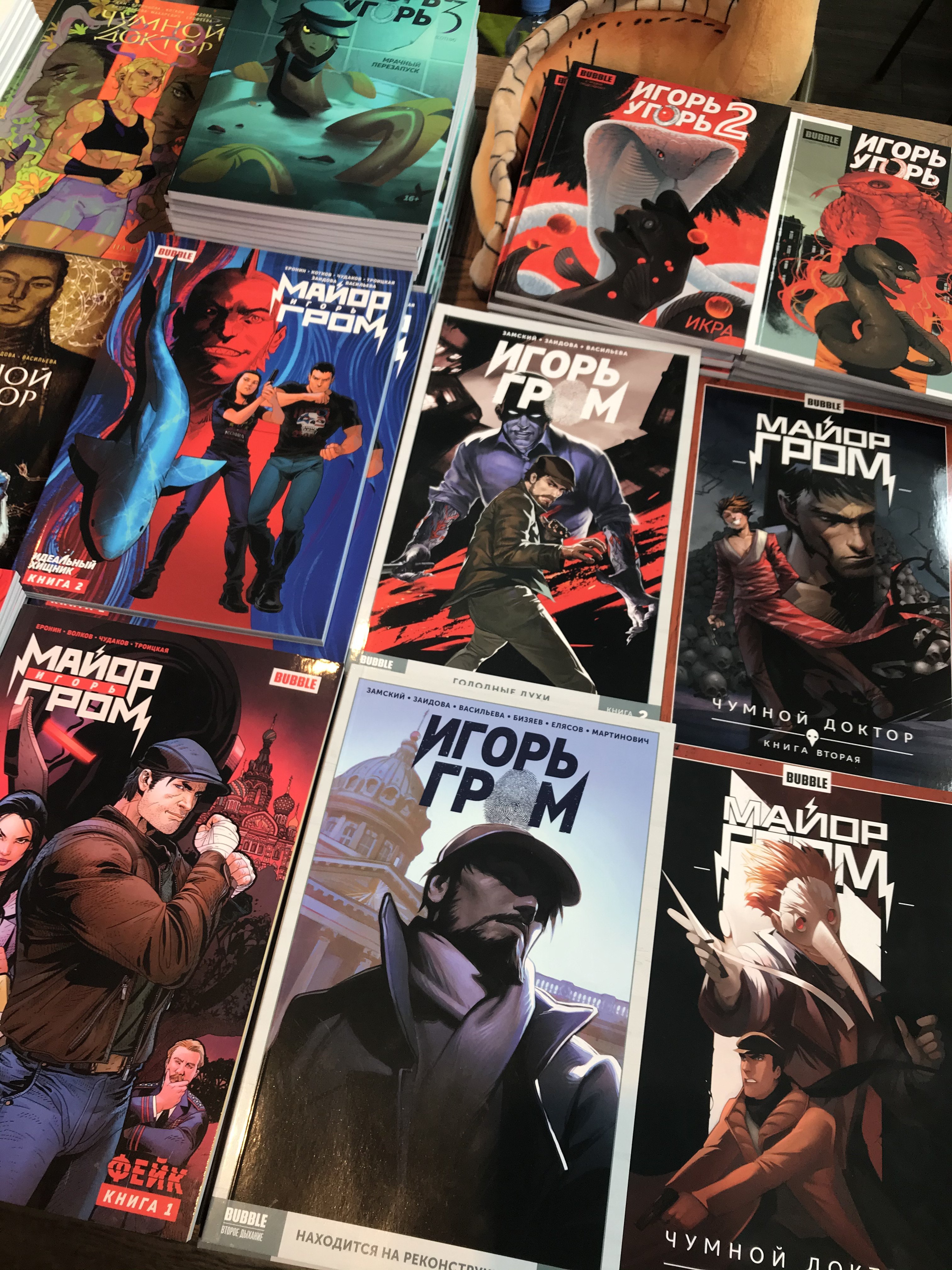 «Такие комиксы, как „Вор теней“ и „Майор Гром. 1939“, выгодно смотрятся на офсете (менее дорогая и белая бумага по сравнению с мелованной – Прим. ред) благодаря плоским цветам и олдскульному рисунку. Но взять и перенести на офсет всё, что мы издаём, невозможно – сильно упадёт качество, к которому привыкли наши читатели».