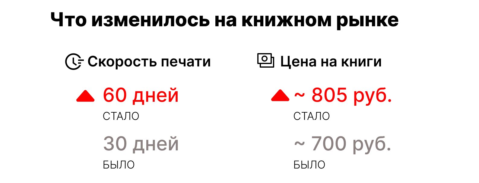 Печатные издания подорожали примерно на 15%, некоторые из них вырастут в цене до конца года. Серьёзных перебоев в работе типографий нет, и проблемы с красками и бумагой удаётся решать. Сложнее обстоят дела с правами на книги зарубежных авторов – их не так просто заменить отечественными писателями.