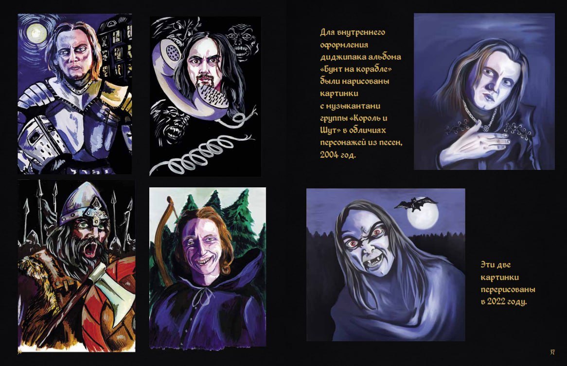 С этой книгой будет интересно познакомиться и новичкам в фандоме, и верным фанатам, ведь в издание вошли рисунки и записи автора, которые нигде не публиковались раньше. Среди них – эскизы к концертным декорациям, фото костюмов с первых выступлений и портреты участников «КиШа» в образах знаменитых персонажей из песен.