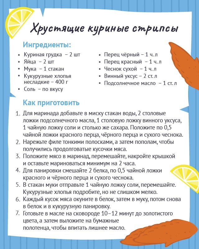 Наггетсы или стрипсы? Мы выбираем второе :) Если вы тоже, приготовьте вкусное хрустящее блюдо к празднику фаст-фуда. И не забудьте выбрать книгу для этого аппетитного дня.