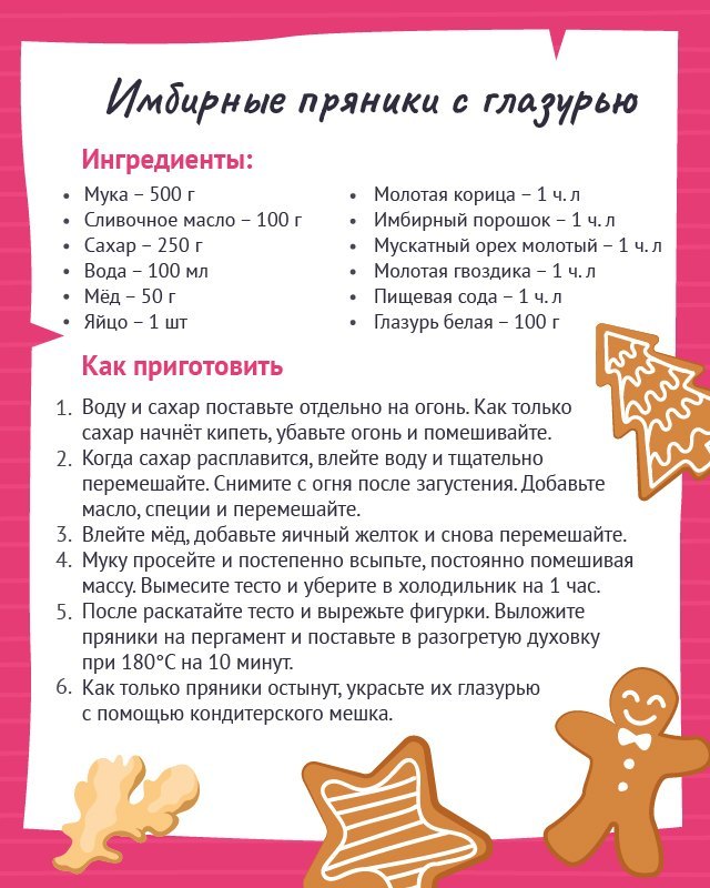 Кулинарная книга подробно рассказывает, как готовить ароматные пряники. Следуя инструкциям, можно создать из теста и глазури обаятельных зайчиков, разноцветные варежки и доброго мишку. А ещё – научиться готовить сладкий сироп, который заменит мёд.