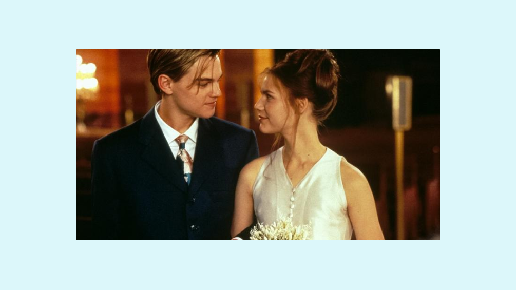 Фильм вышел в 1996 году. Особенность картины в том, что трагедия Уильяма Шекспира развернулась в современности, герои стали наследниками двух конкурирующих бизнес-империй. Леонардо Ди Каприо сыграл Ромео Монтекки и получил за эту роль премию на Берлинском кинофестивале 1997 года.