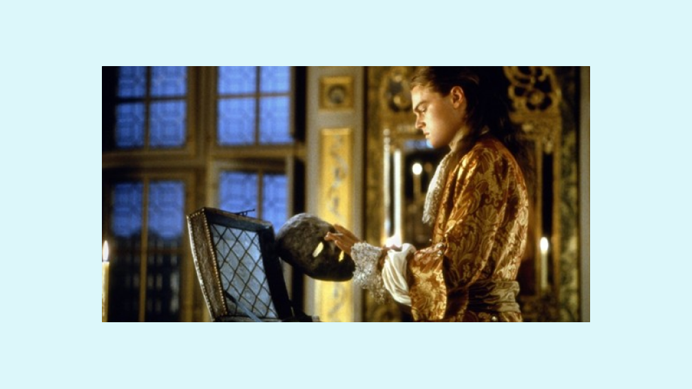 Фильм 1998 года рассказывает о Франции в эпоху правления Людовика XIV. А ещё — про приключения Атоса, Портоса, Арамиса и д’Артаньяна. Мушкетёры освобождают из тюрьмы пленника в железной маске, им оказывается брат-близнец Людовика XIV.