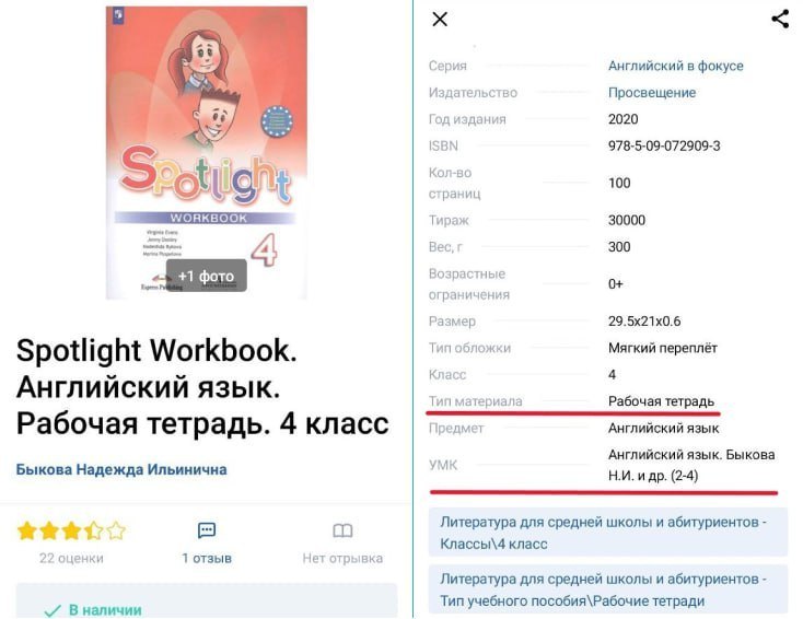 В карточке книги для учёбы сейчас можно узнать, к какому учебно-методическому комплексу она относится и какой это тип материала: рабочая тетрадь или учебное пособие.