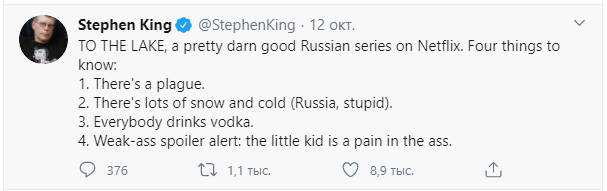 Работа над книгой заняла около года и первое время Яна публиковала главы в открытом доступе, а потом – в закрытой группе. Тогда будущая писательница и подумать не могла, что сериал по её книге будет в топе на Netflix, а Стивен Кинг станет хвалить его в твиттере.