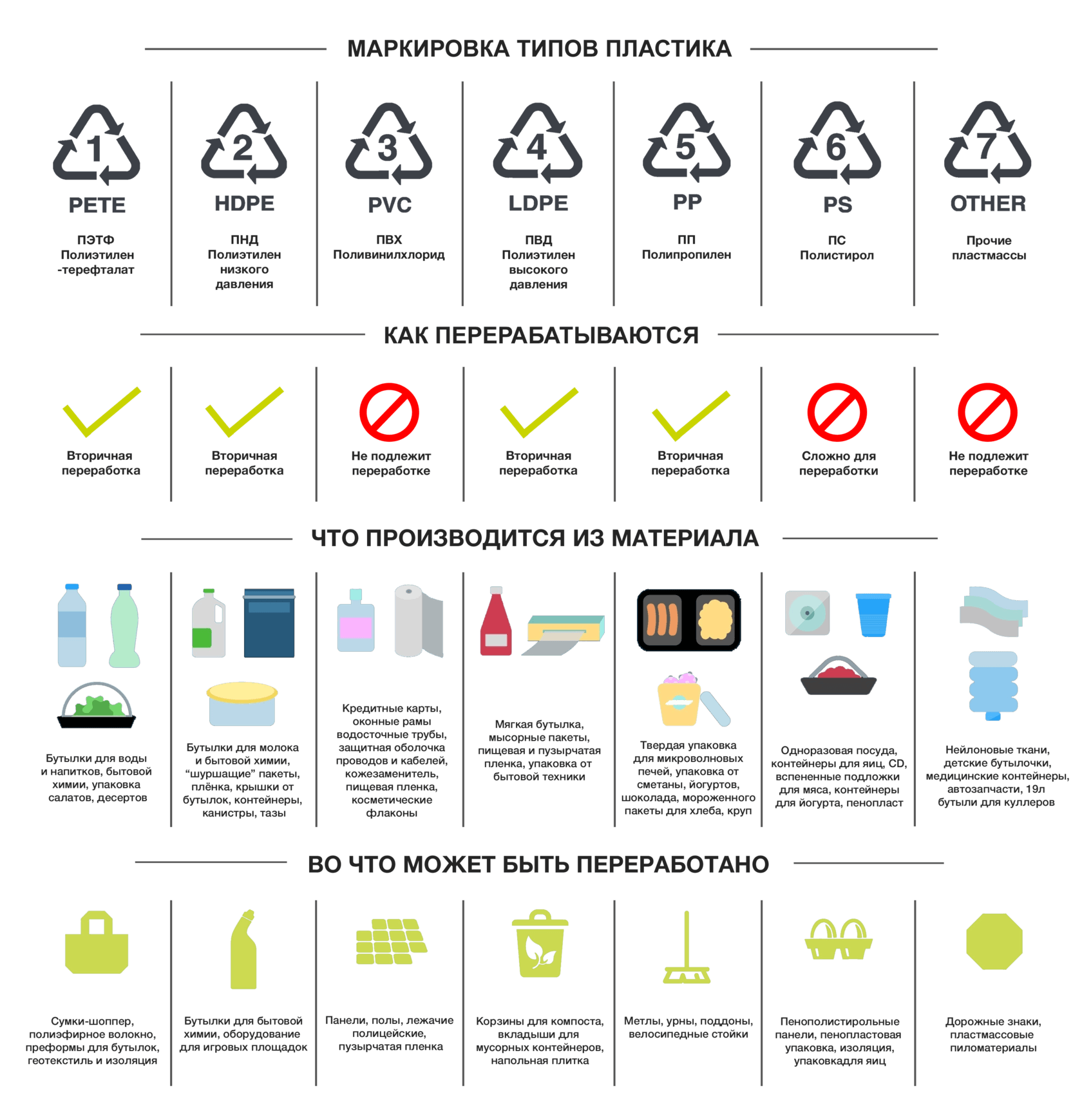 - Старайтесь не покупать продукты в пластике, который нельзя сдать на переработку.