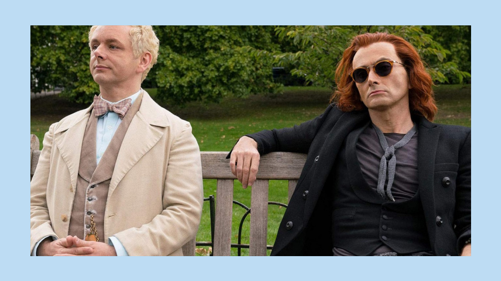 Весёлая и оригинальная история дружбы чудаковатого ангела и эксцентричного демона уже более 30 лет радует читателей. А в 2019 году книга получила долгожданную экранизацию от Netflix в формате сериала, переосмыслив историю уже после смерти Терри Пратчетта. В этом издании обложку украшают главные герои в исполнении Дэвида Теннанта и Майкла Шина.