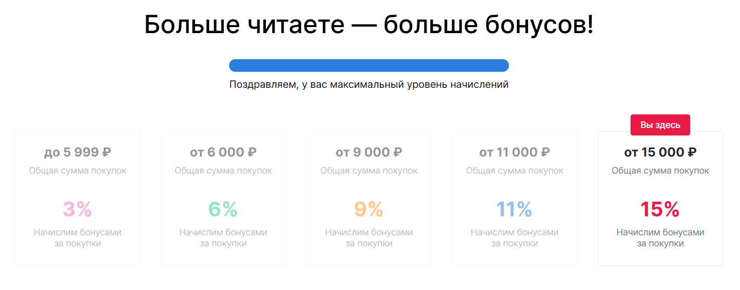 Все ваши покупки в «Читай-городе», «Буквоеде», book24 и Литресе сохраняются в единой программе, а значит, бонусы тоже суммируются. Вы можете использовать их в любом из наших онлайн или розничных магазинов и в сервисе «Литрес».