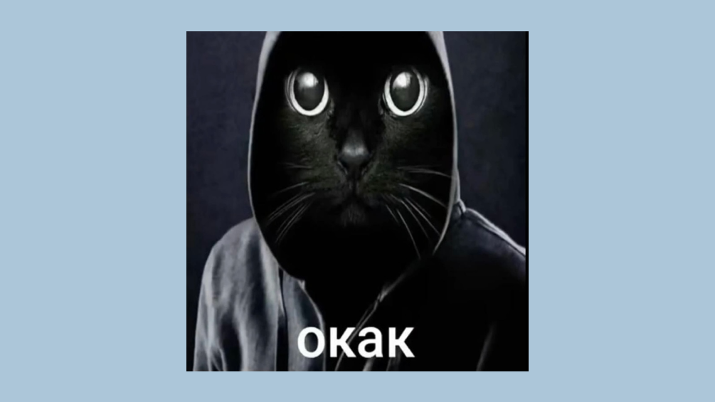 Недавно увидели один из таких: с котиком в капюшоне и подписью «окак»: