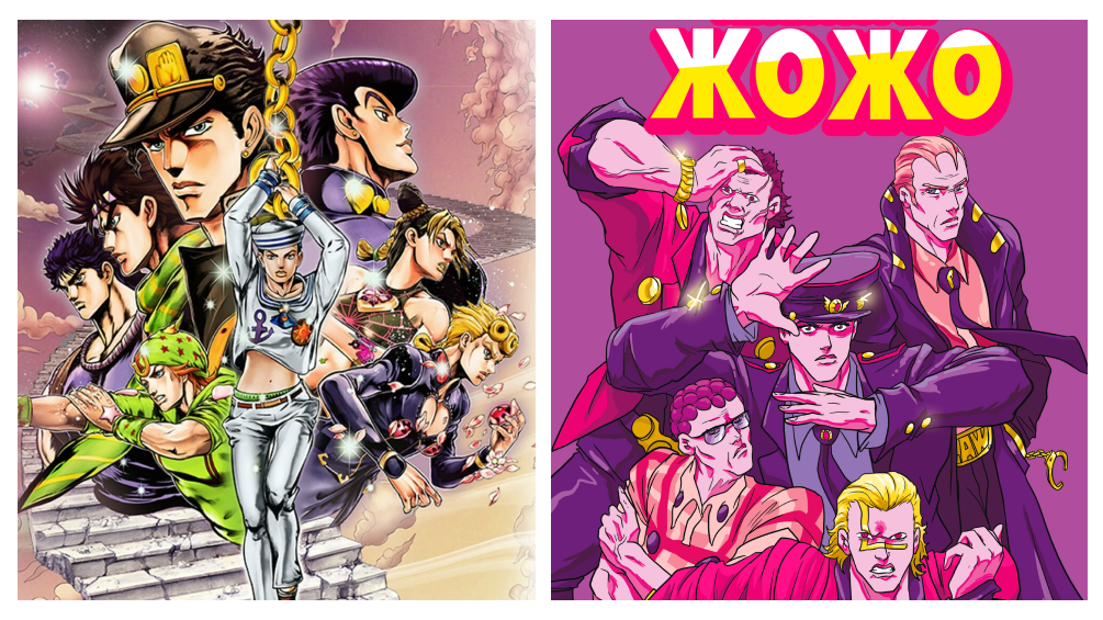 Ещё руманга может быть пародией на существующий японский комикс, как в случае с «Причудливыми авантюрами Жожо». Авторы взяли за основу героев известной манги JoJo's Bizarre Adventure, добавили локальных мемов и перенесли действие в Россию разных периодов – в шестидесятые, девяностые, 2007 год и будущее.