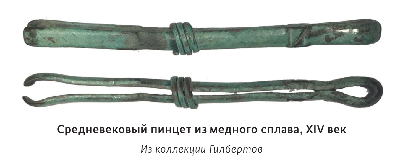 Во многих книгах упоминаются маленькие пинцеты из медного сплава или серебра в составе наборов туалетных принадлежностей средневековой женщины. Археологические находки это подтверждают, однако мы не знаем точно, для вырывания чего предназначались такие инструменты.