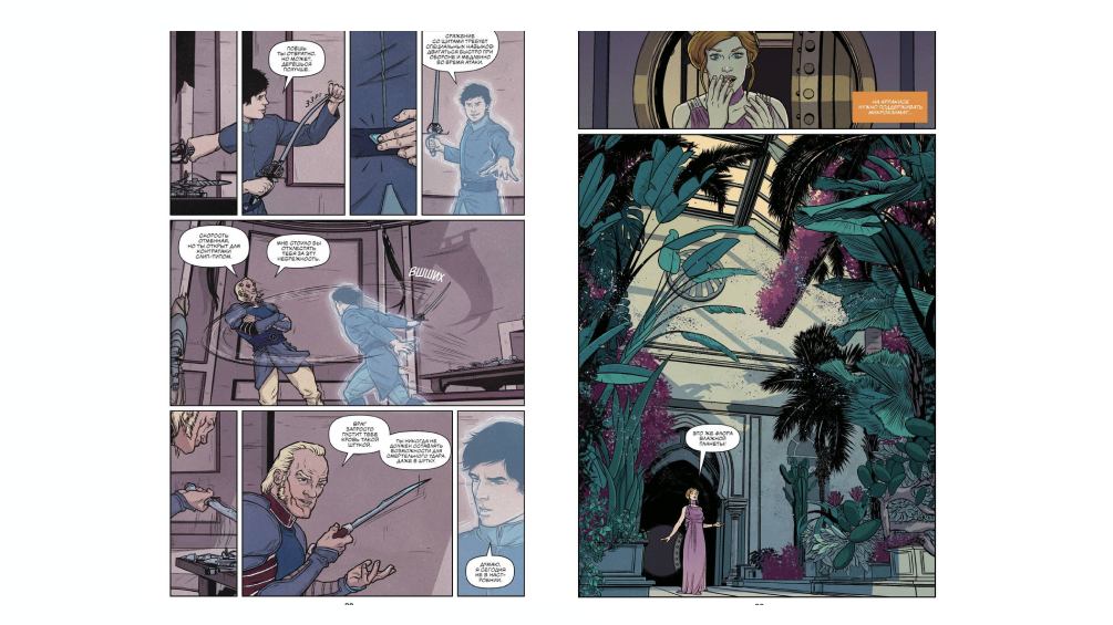 Иллюстрации подготовили художники Рауль Аллен и Патриция Мартин, а обложку – Билл Сенкевич. Они сделали графический роман контрастным, каждая страница оформлена в одном или двух новых цветах – чтобы подчеркнуть разнообразие мира Фрэнка Герберта.