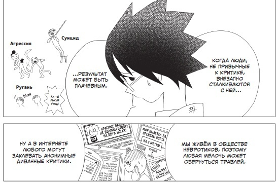 Поначалу может показаться, что шутки в манге слишком жестокие, ведь смеяться над несчастным учителем неправильно. Но чёрный юмор для героев – это только способ примириться с непростой реальностью. А если признать существование проблемы, её легче решить.