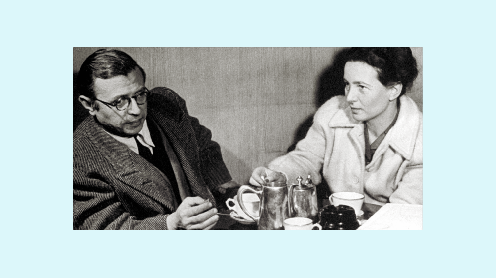 Впервые писательница познакомилась с французским философом в студенческие времена. Они быстро нашли общие темы для интеллектуальных разговоров и духовную связь. Де Бовуар признавалась: «Это был мой двойник, в нём я обнаружила доведёнными до последнего предела и мои вкусы, и мои пристрастия».