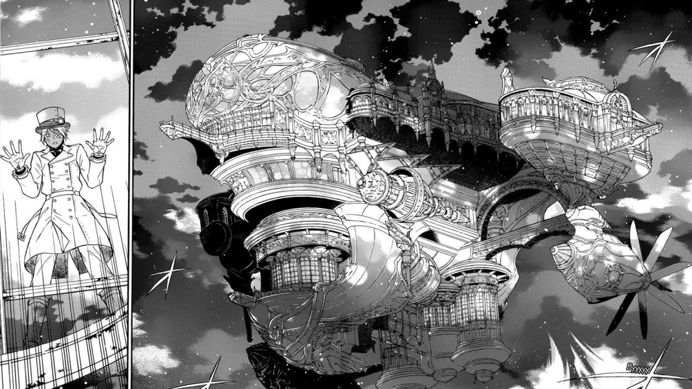 Мы неслучайно сказали о красивых костюмах. В манге вообще много красивых деталей – и во внешности героев, и в прорисовке фона. Дзюн Мотидзуки умело передаёт викторианско-стимпанковский антураж: по мощёным улицам разъезжают кареты, девушки ходят в пышных платьях, а по небу летают огромные технологичные дирижабли.