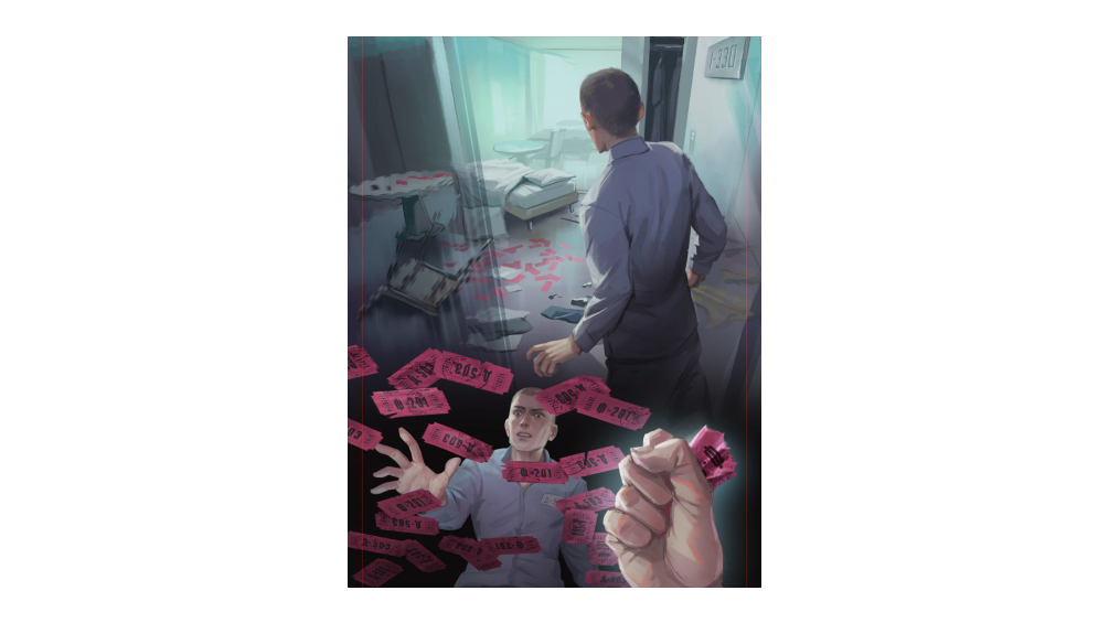 Так как обложка – это лицо книги и по ней, вопреки расхожей пословице, судят издание, на её создание я выделила целый месяц. У меня было несколько эскизов и идей, которые я пробовала развивать. В финальной версии остались темы зеркал, стёкол и отражений, в которых фрактально множится главный герой. Но помимо этого я также пробовала искать композицию с руками, вознесёнными к небу в едином возгласе – символ толпы и коллективизма. И вариант с водоворотом тел (мы как общество), противопоставленный обнявшимся главным героям (мы как пара).