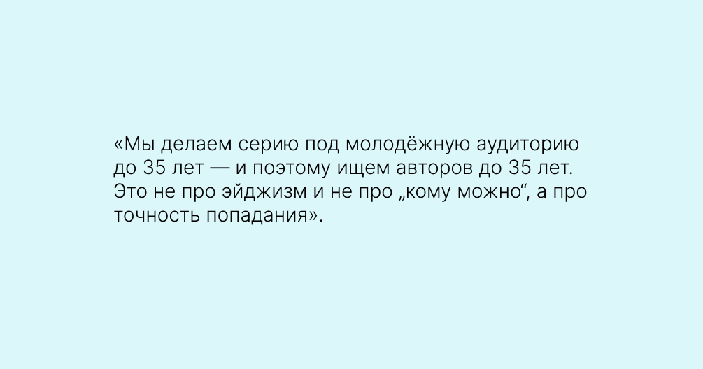 Но важно понимать, что все творцы разные. И даже самый молодой автор может не захотеть прислушиваться к аудитории и искать актуальные темы.