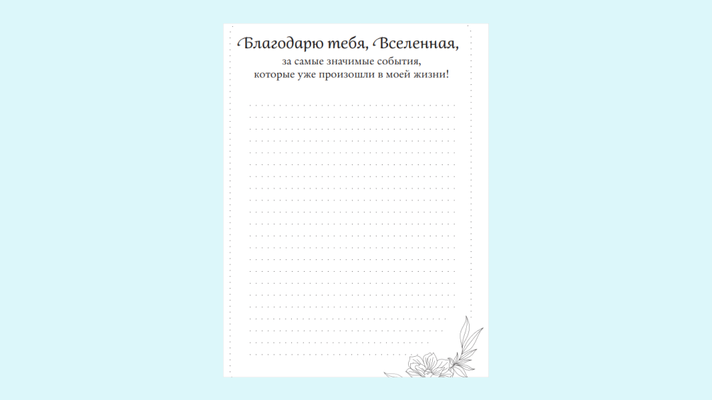 Неважно, какой формат вы выберете, будет ли это блокнот благодарности, дневник для рефлексии или загадывания мечты. Всех их объединяет одна цель — дать вам возможность остановиться и услышать себя.