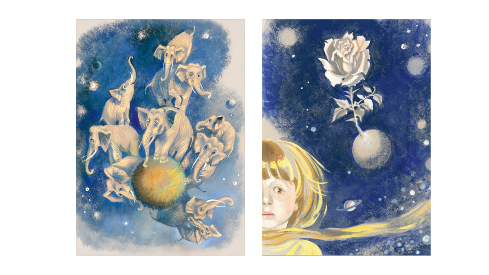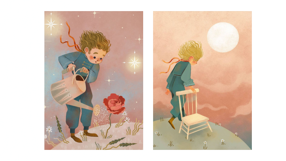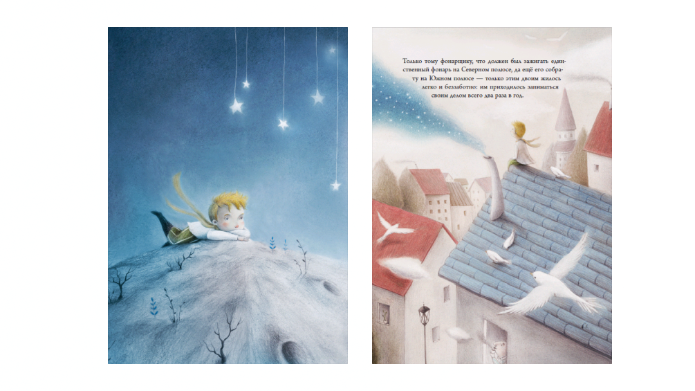 В изображениях Маленького принца, которые придумала Ника Гольц, будто отражаются звёзды. Она увидела героя светлым и чистым созданием в тёмном бескрайнем космосе.