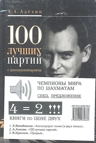 100 лучших партий с автокомментариями, Х.Капабланка. Автопортрет гения. В 2 т., В. Крамник. Прорыв /Комплет из 2-х.книг