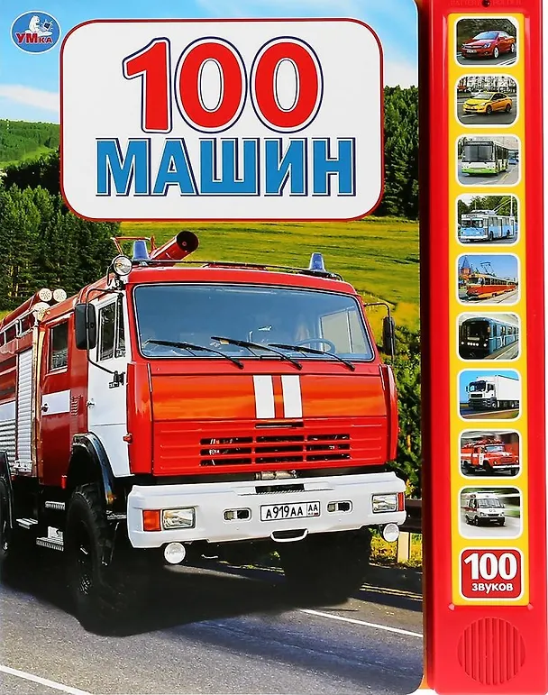 - Книжка с «изюминкой» сразу привлечёт внимание: 10 звуковых кнопок на обложке при нажатии порадуют вас и ребёнка 100 звуками машин!