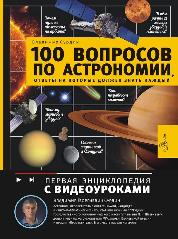 В этой книге вы найдёте ответы на самые часто задаваемые автору — известному астроному Владимиру Сурдину — космические вопросы. В чём разница между звездой и планетой, кометами и астероидами? Как и где рождаются звёзды? Существуют ли звёзды в 1000 раз массивнее Солнца? Как измерили огромные расстояния до звёзд и галактик? Как спастись от астероида? Чем грозят нам кометы? Что такое квазар и пульсар? И конечно, ответ на самый популярный вопрос: что такое чёрные дыры? Ответы короткие и понятные, кроме того, воспользовавшись любым гаджетом и QR-кодом из книги, вы сможете посмотреть видеозапись с ответом автора. Усваиваем знания, подтягиваем свое образование в любом возрасте! Для среднего и старш
