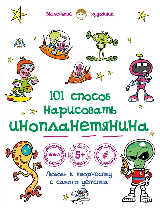 Книга «101 способ нарисовать инопланетянина» наглядно показывает, как всего за 6 простых шагов создать великолепный рисунок. Вы и ваш ребенок сможете изображать целые истории, наполняя их персонажами этой книги!