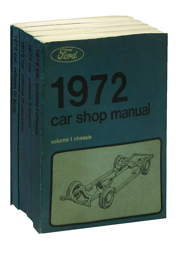 Комплект включает в себя: Том 1 - Шасси, Том 2 - Двигатель, Том 3 - Электрооборудование, Том 4 - кузов, Том 5 - Предварительная доставка, техническое обслуживание и смазка. Эти руководства являются оригинальными книгами, которые механики Ford использовали для обслуживания автомобилей.