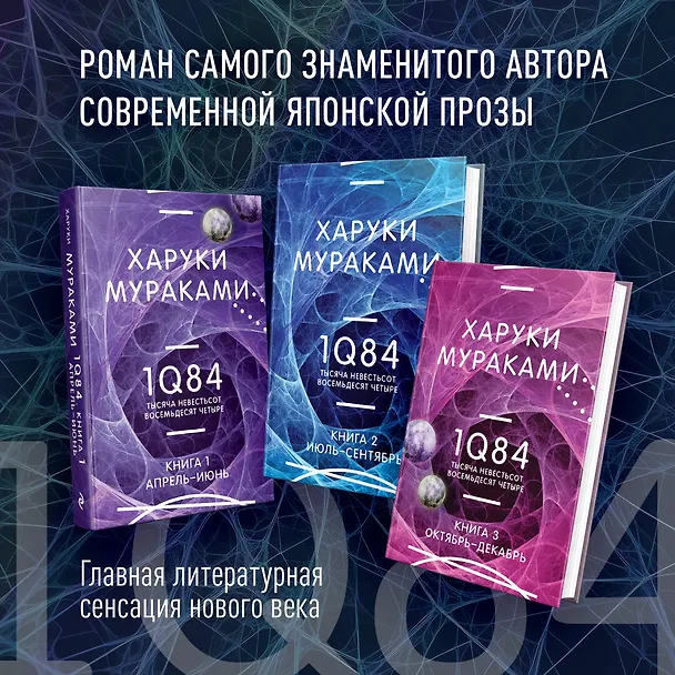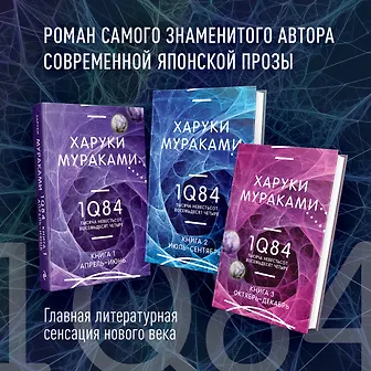 В комплект «1Q84. Тысяча Невестьсот Восемьдесят Четыре» входят три части этого романа Харуки Мураками.