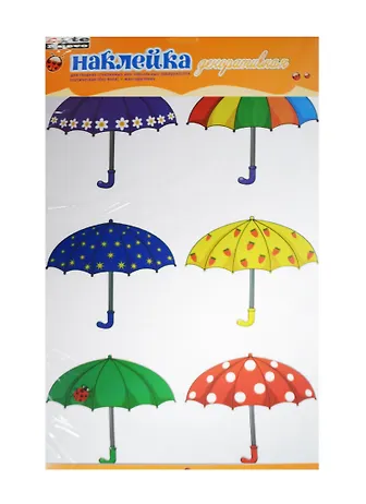 2DN-WM-2s Наклейка декор. (статическая) для окон зеркал Осень Зонтики 2 (33х60см) (упаковка)