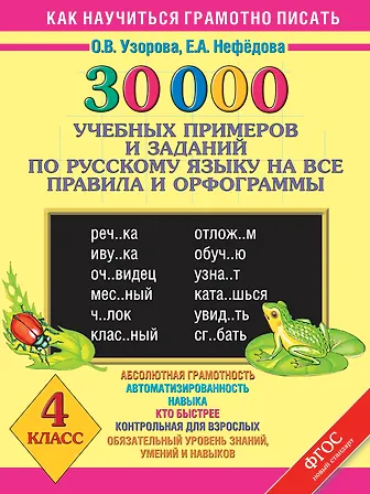Елена Нефедова, Ольга Узорова «30 000 учебных примеров и заданий по русскому языку на все правила и орфограммы. 4 класс» и выбрать удобный способ его получения: самовывоз, доставка курьером
