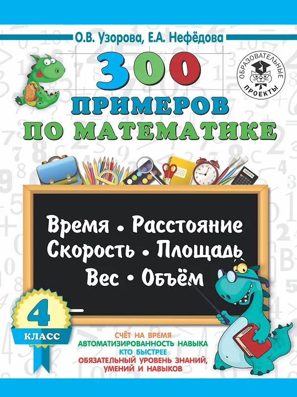 300 примеров по математике. 4 класс. Время, расстояние, площадь, скорость, вес и объем.
