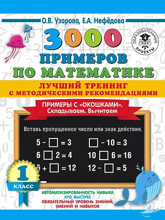 3000 примеров по математике. Лучший тренинг. Складываем. Вычитаем. Примеры с окошками. С методическими рекомендациями. 1 класс