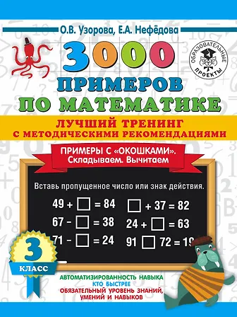 3000 примеров по математике. Лучший тренинг. Складываем. Вычитаем. Примеры с "окошками". С методическими рекомендациями. 3 класс