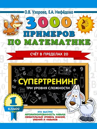 3000 примеров по математике. Супертренинг. Три уровня сложности. Счет в пределах 20. 1 класс
