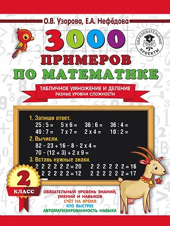3000 примеров по математике. Табличное умножение и деление. Разные уровни сложности. 2 класс