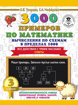 3000 примеров по математике. Вычисления по схемам в пределах 1000. Все действия с тремя числами. Ответы. 3 класс