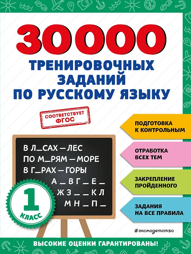 Наиболее действенный способ научиться писать грамотно — систематическое повторение. Задания на каждую орфограмму необходимо выполнять многократно, чтобы довести навык правильного написания до полного автоматизма. Ученику предлагается выполнить 30 000 заданий по основным темам программы русского языка для 1 класса. Повторив правила в начале разделов и выполнив ряд практических заданий, школьник надёжно закрепит полученные знания. В дальнейшем он гарантированно сумеет их применить, выполняя самостоятельную, проверочную или просто домашнюю работу.