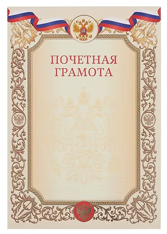 Грамота почетная А4 с символикой, тисн.зол.фольгой, бежевая