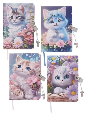Книга для записей 112л лин. "Милые котики" 19*12,5см, на замочке, ассорти
