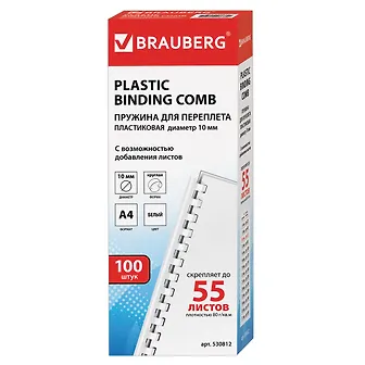 Пластиковая пружина для переплета документов BRAUBERG совместима с большинством переплетных машин. Преимуществом является возможность быстро извлечь документы из переплета или добавить листы в уже переплетенный документ.