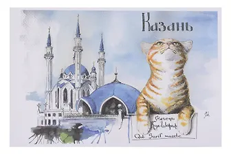 Открытка почтовая для посткроссинга акварель города России Казань "Коты" Мечеть.