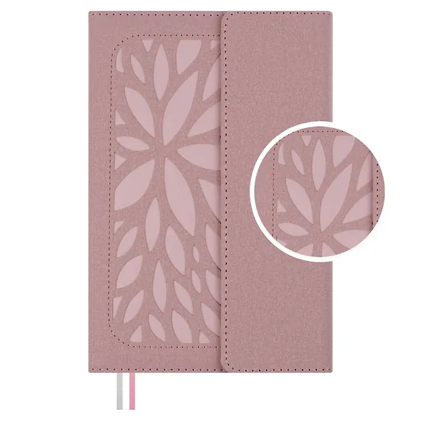 Ежедневник недатированный ESCALADA, А5, 160 л., арт. 70603/ 15 НАППА РОЗОВЫЙ (кожзам: 146х211 мм, твёрдый переплёт, материал обложки: искусственная кожа "Наппа"; способ крепления блока: ниткошвейный; декор: отделочная строчка, перфорация + подложка из искусственной кожи; вн. блок: 160 л., кремовый офсет 70 г/м², печать в одну краску (линия), справочный материал: есть; перфорация углов блока: нет; отделка среза: окрашивание пантоном; закладка/-и: два ляссе, каптал: есть; форзац: печать пантоном, особенности: магнитный клапан; персонализация возможна: да; индивидуальная упаковка: ПЭТ-пакет)