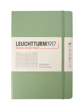 Записная книжка Leuchtturm A5 в линейку, в твердой обложке станет верным помощником в делах и творческих начинаниях. Удобный размер делает этот блокнот Лехтурм вместительным, но при этом достаточно компактным и легким, чтобы вам было удобно носить его с собой.