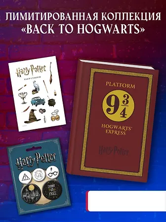 Уникальный набор из мира чародейства и волшебства для настоящих поклонников Гарри Поттера! Лимитированная коллекция «Back to Hogwarts» – станьте первым обладателем магического комплекта на зависть всем маглам! Станьте обладателем эксклюзивного блокнота из красной кожи, 5 волшебных значков с удобным креплением и набора уникальных стикеров. Невероятно быстрый «Хогвартс-экспресс» уже на всех парах мчит к платформе 9 и 3/4! Порадуйте себя и своих близких - впустите магию в свою жизнь!