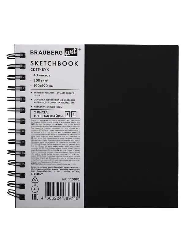 539 ₽ 449 ₽Скетчбук 145*205 60л "ART CLASSIC" черный, 160г/м2, белая бумага, гребень, тв. обложка Купить
