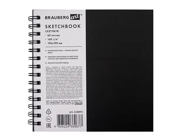 539 ₽ 449 ₽Скетчбук 190*190 60л "ART CLASSIC" крафт, 160г/м2, белая бумага, гребень, тв. обложка Купить