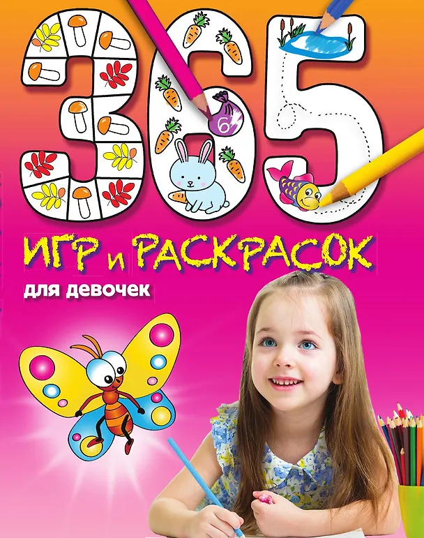 Сборник увлекательных игр, раскрасок и развивающих заданий для девочек. Книга позволит не только замечательно провести время, но и кое-чему научиться: решать логические задачки, аккуратно раскрашивать красивые картинки, рисовать по клеточкам, считать и даже писать печатные буквы — и все это с удовольствием, без утомительных занятий, вместе с любимыми героями. В книге ДЕЙСТВИТЕЛЬНО собраны 365 раскрасок и графических игр и головоломок, и этого количества игр и раскрасок хватит, чтобы надолго развлечь любую девочку старшего дошкольного возраста
