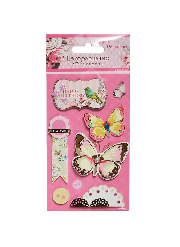3D декоративные наклейки С Днем Рождения (СР-22) (Рукоделие) (упаковка)