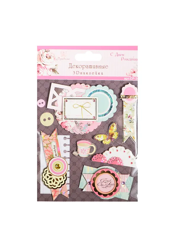 3D декоративные наклейки С Днем Рождения (СР-34) (Рукоделие) (упаковка)